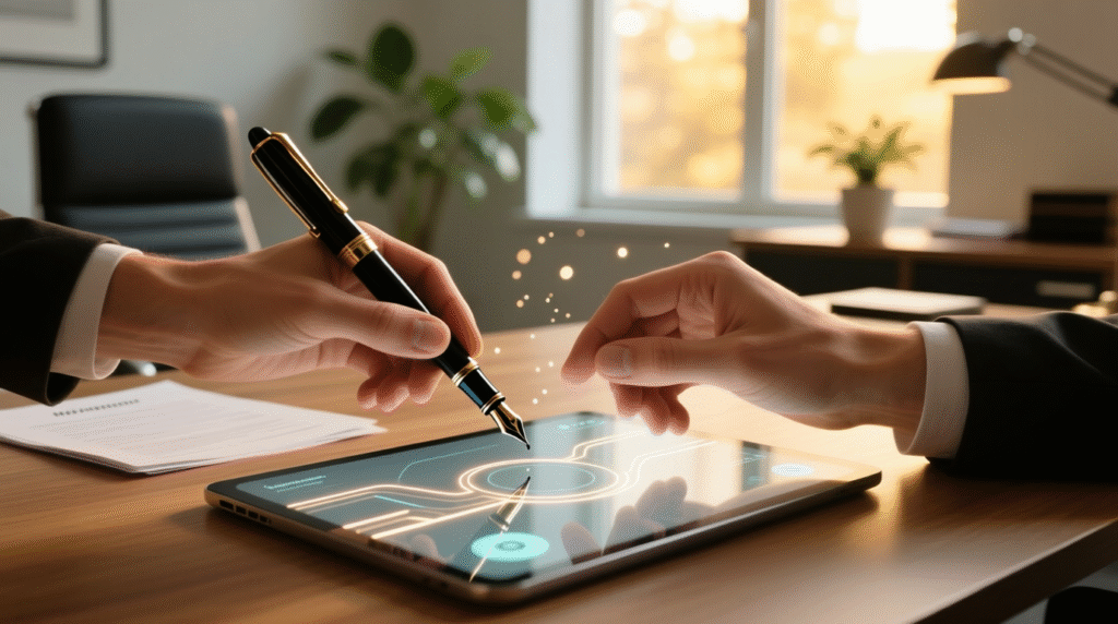 • La signature électronique qualifiée : Désormais standard pour de nombreux actes, elle garantit l’intégrité et l’authenticité des documents signés à distance. C’est un gain de temps considérable pour les parties et les notaires.
